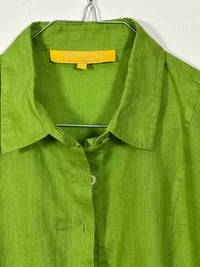 Camicia vintage composizione in puro lino color verde mela, a mezza manica con bottoni in madreperla e pinces. Vestibilità normale.