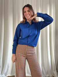 Camicetta anni 70, composizione 100% cotone di alta qualità. Modello che nasce da uomo, ma perfetta anche unisex. Bottoncini marroni, polsino stondato con etichetta perchè da fondo di magazzino vintage. Vestibilità dritta.
