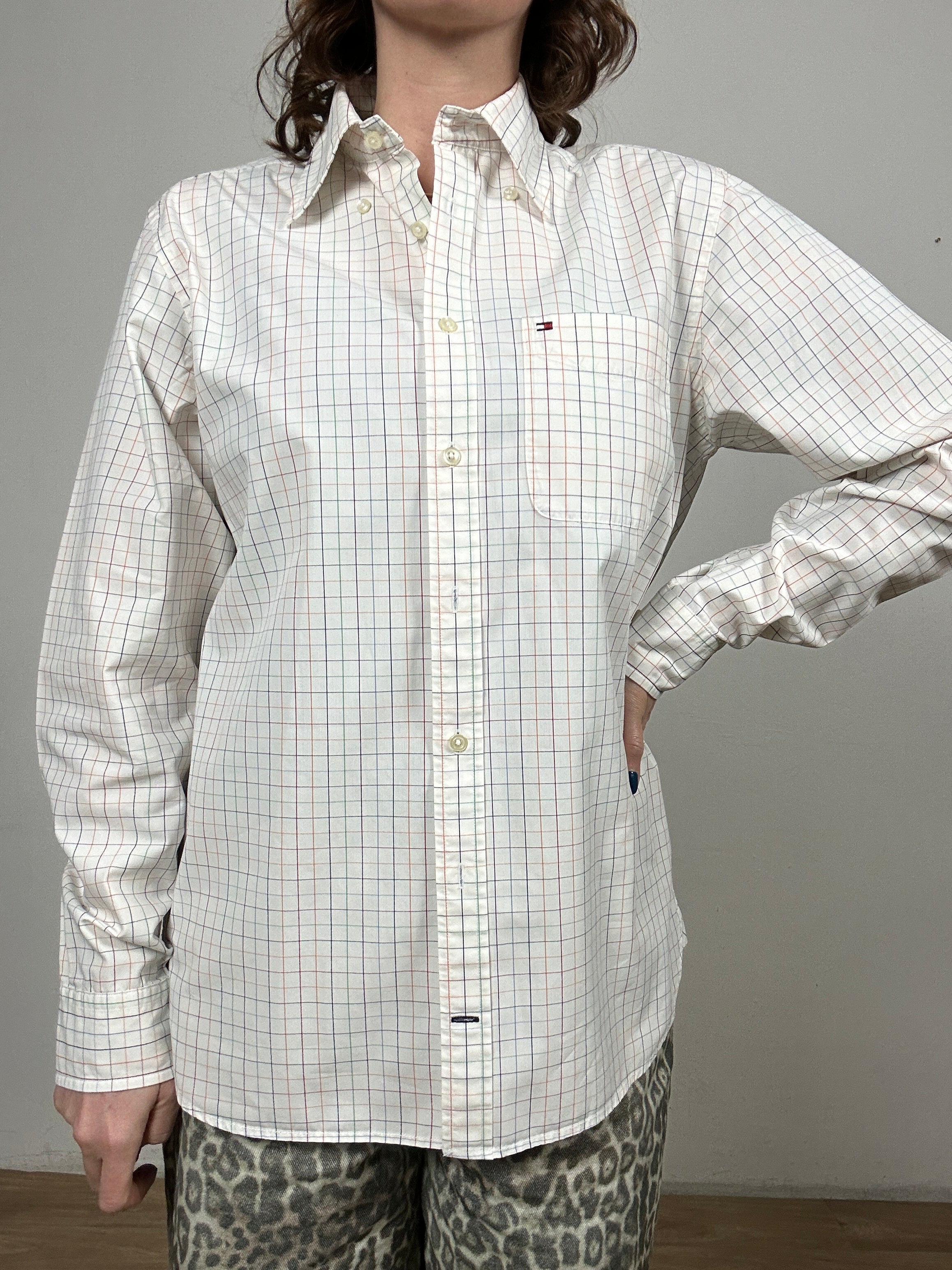 Camicia TOMMY Hilfiger con texture a quadretti larghi con righe multicolore. Composizione 100% cotone con bottone a destra, nasce da uomo, vestibilità dritta.
