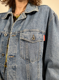Giacca di jeans vintage Movimento anni 80 composizione 100% cotone, lavaggio chiaro, chiusura con bottoni in metallo e due tasche a taglio sul davanti. modello che nasce da uomo consiglio unisex vestibilità fino a XL da donna L per uomo.