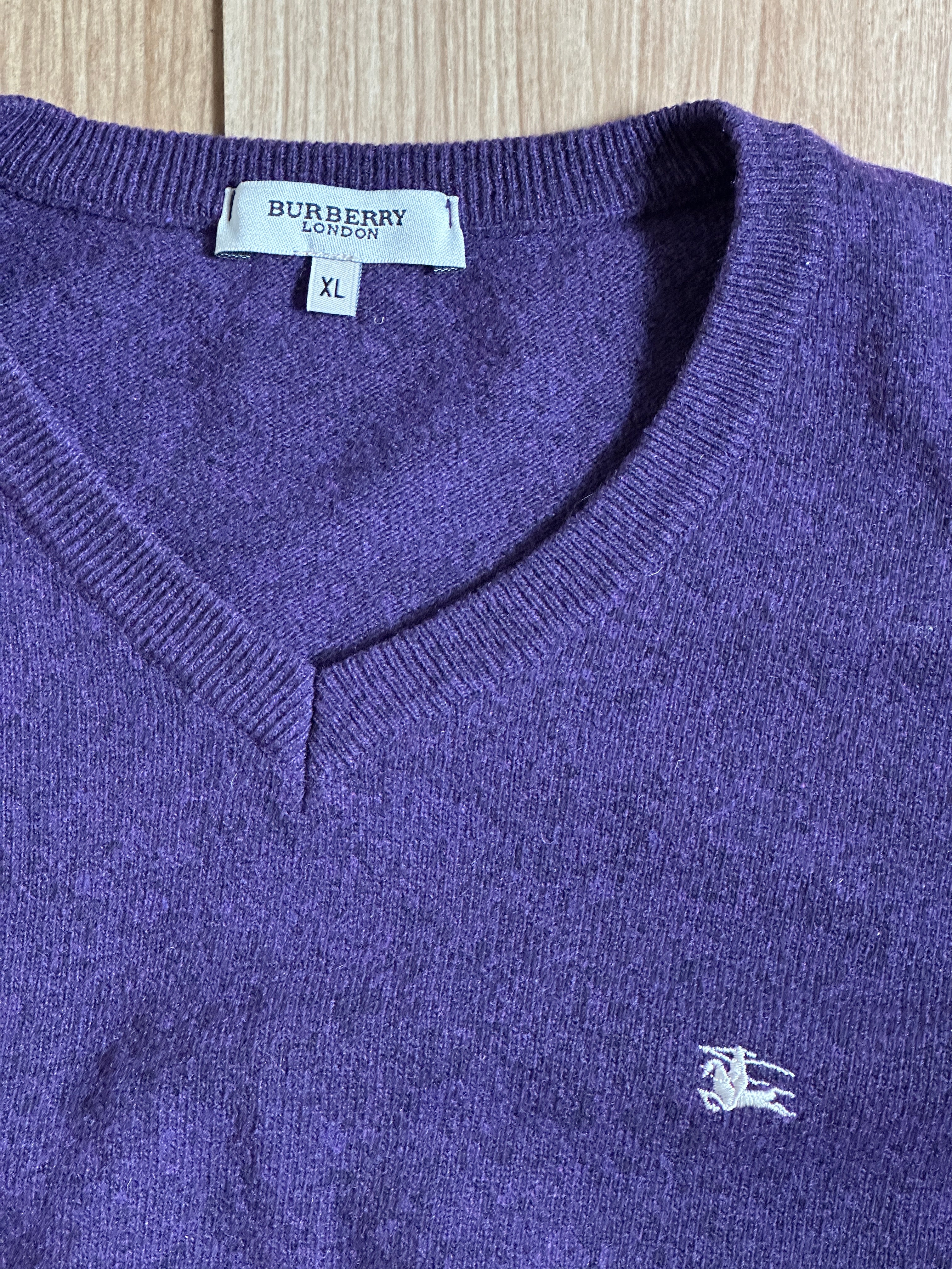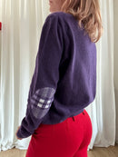 Maglioncino Burberry London composizione 80% lana merino 20% poliammide. Texture super morbida al tatto e caldo. Modello con scollo a V accollato e manica lunga con toppe Tartan sui gomiti, cannolè. Vestibilità dritta, over.