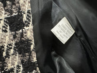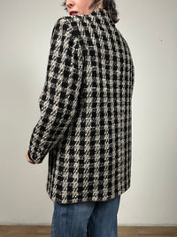 Giacca in lana fantasia vichy. Chiusura doppio petto, taglio anni 80 con spallina foderata internamente, 92% lana.