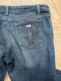 Jeans Miss sixty anni 2000, modello a vita bassa extra Low Tommy. Lavaggio medio con scoloriture sul davanti e taglio a zampa. Composizione 100%cotone.